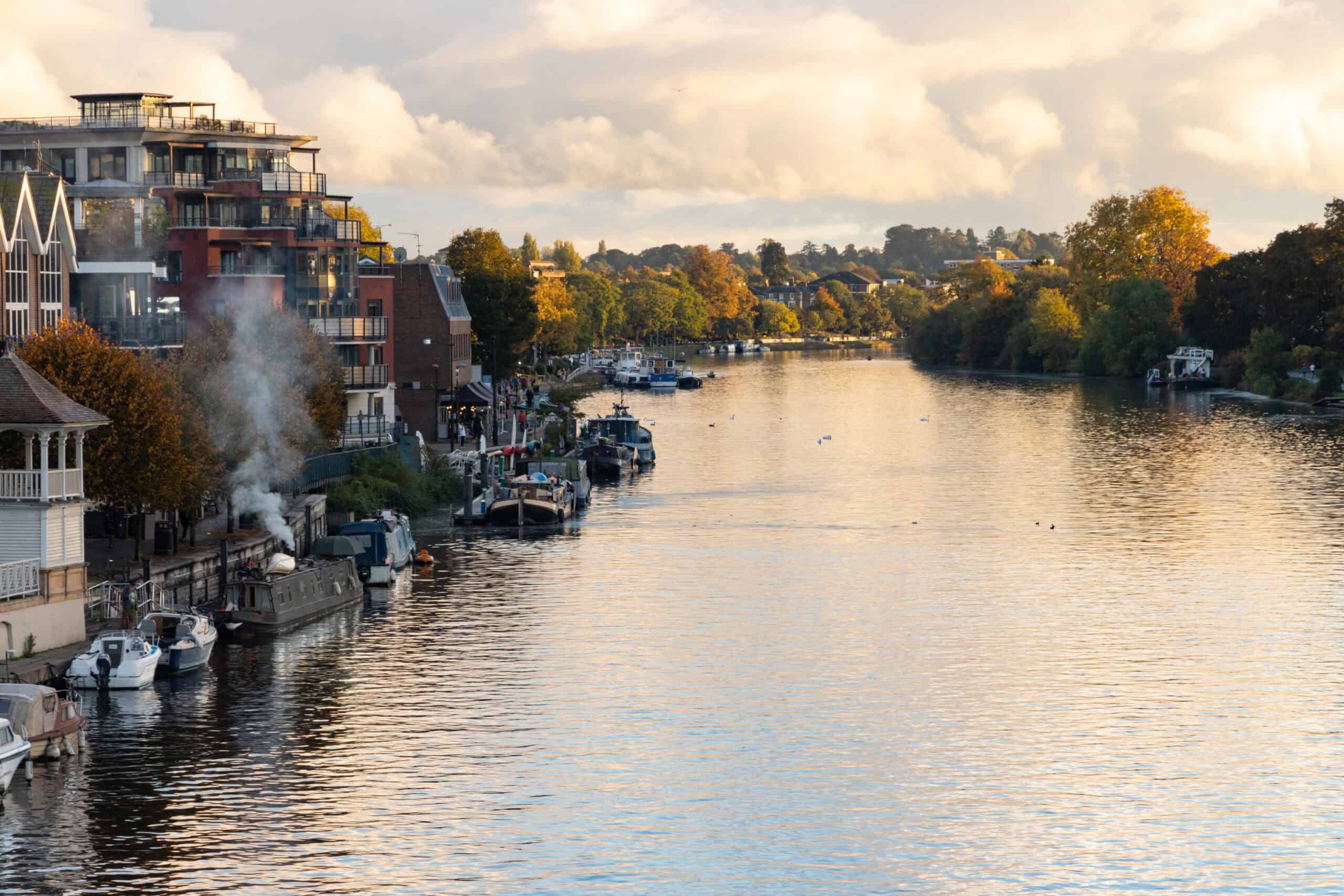 Kingston Upon Thames and Surbiton on the Thames river bank in autumn